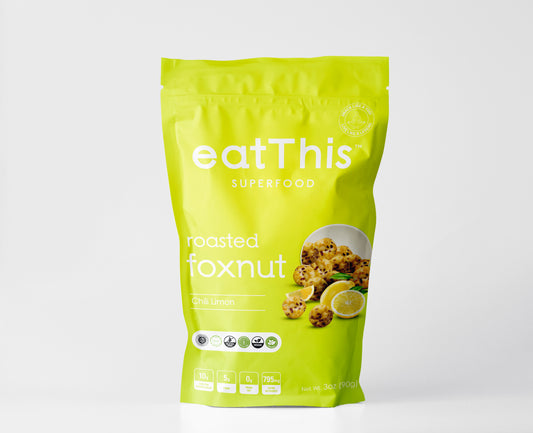 eatThis celebrates nature and authenticity. We offer nutritious roasted foxnuts (makhana) to enhance your snack time experience. These foxnuts are perfectly roasted, delivering a crunchy, protein-packed bite. We provide a guilt-free snack that supports your healthy lifestyle goals. Sign up for our newsletter and receive 10% off your first order. Enjoy every snack time with a boost of natural energy.